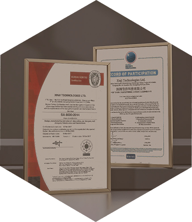 Xinji has achieved multiple prestigious international certifications, including Intellectual Property Management, C-TPAT, SA8000, UL, 3C, ISO9001, and ISO14001.
